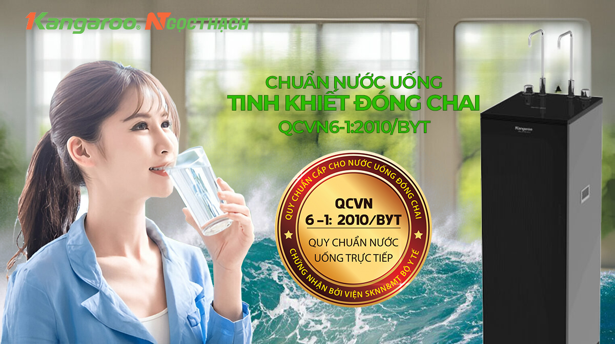 Nước sau lọc của Máy lọc nước Kangaroo KG10A11 được kiểm định và xác nhận đạt chuẩn nước uống đóng chai và nước uống trực tiếp tại Việt Nam – QCVN 6-1:2010/BYT, do Bộ Y tế ban hành.