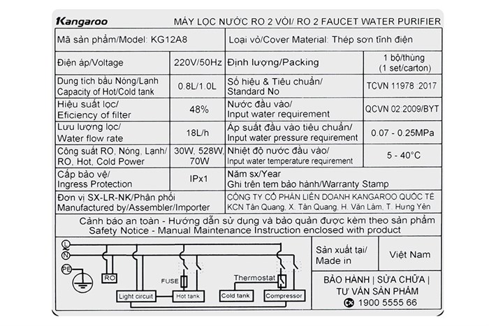 ✨ Với hệ thống bảo vệ kép toàn diện, Kangaroo KG12A8 mang đến sự yên tâm trọn vẹn – để mỗi ly nước bạn uống không chỉ sạch, mà còn an toàn trong từng chi tiết vận hành.