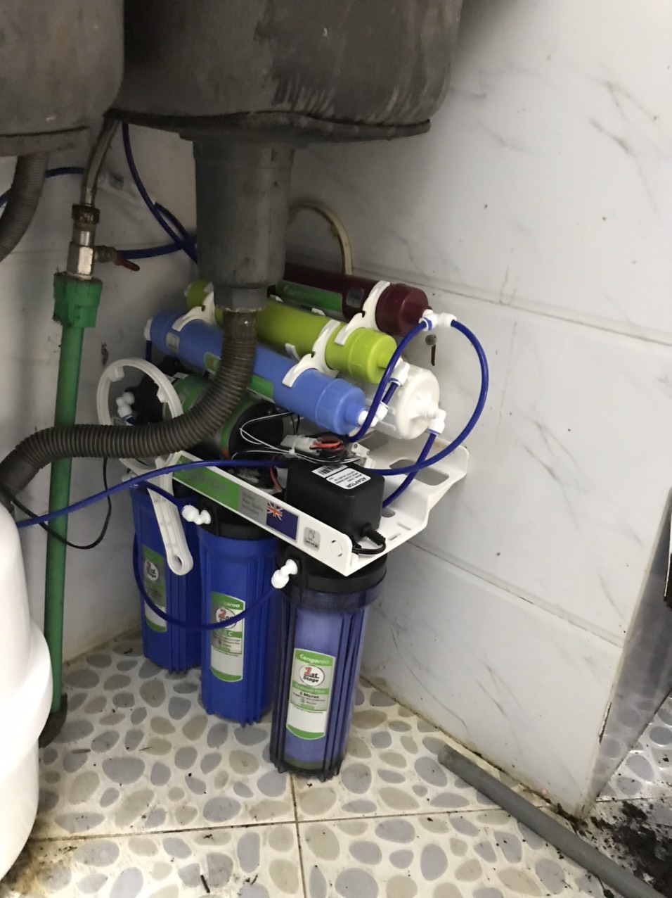 Hình ảnh thực tế máy lọc nước kangaroo Kg104A không tủ lắp dưới gầm bếp tại nhà khách hàng: